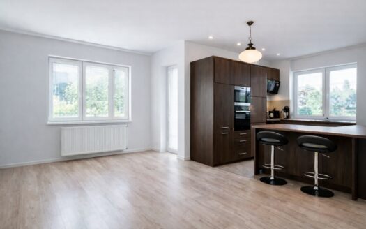 Kuchnia umeblowana meblami na wymiar z lodówką, kuchenką gazową: stolik, krzesła, szafki. Umeblowanie pozostałych pomieszczeń do uzgodnienia.