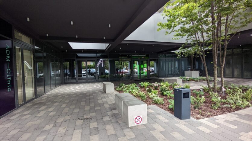 W budynku znajduje się lobby z recepcją, całodobową ochroną oraz monitoringiem.