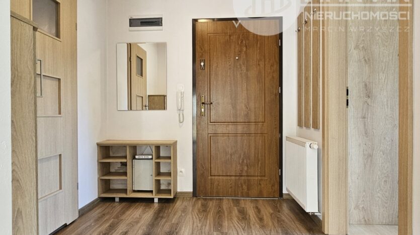 Przedpokój – z miejscem na obuwie i wieszaki; rolety zewnętrzne we wszystkich oknach.