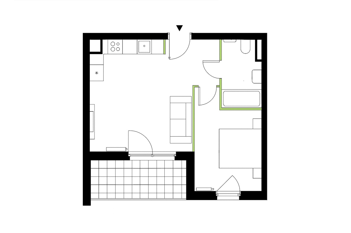 An optional parking space directly by the building for long-term rent is available with the apartment.