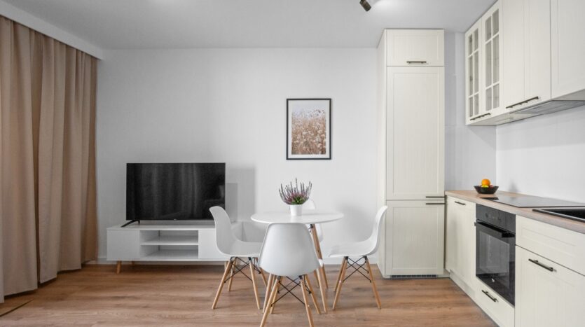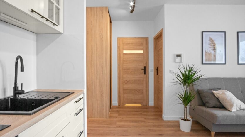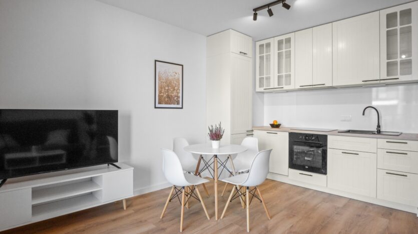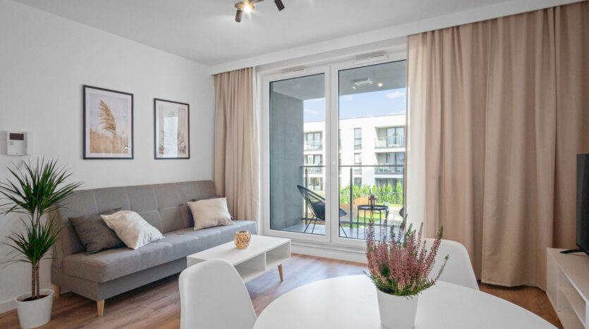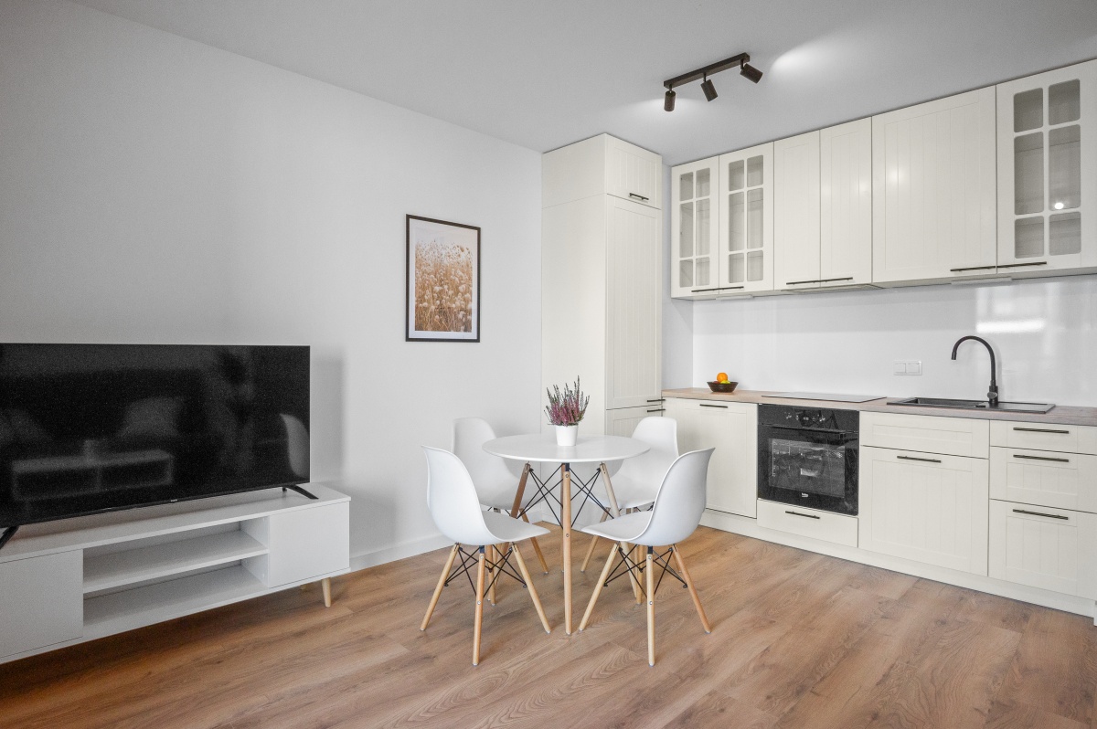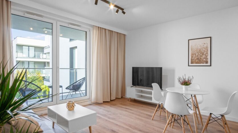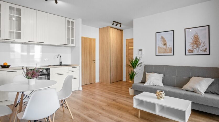 For sale: a 2-room apartment in Scandinavian style in the prestigious Miasteczko Greenwood estate located on Monteverdiego Street in Warsaw, Białołęka district. Finished to a high standard.