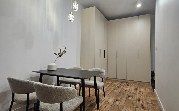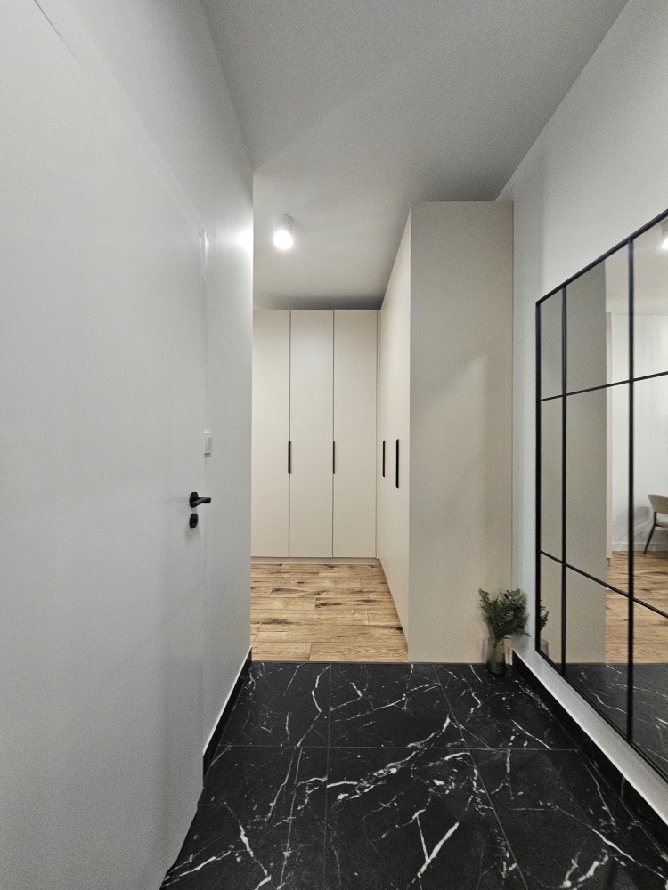 Na sprzedaż nowoczesny apartament w standardzie premium, w pełni wykończony pod klucz i gotowy do zamieszkania od zaraz. Wnętrze zaprojektowane spójnie i funkcjonalnie, z wykorzystaniem wysokiej jakości materiałów oraz mebli wykonywanych na wymiar.