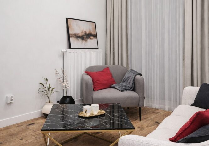 Dodatkowo mieszkanie wyposażone jest w system Smart Home (sterowanie temperaturą i oświetleniem), zapewniający wygodę użytkowania i kontrolę z poziomu telefonu.