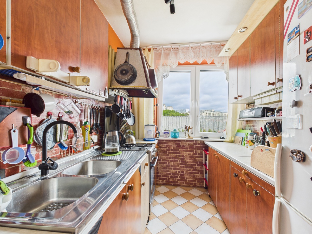 Budynek z lat 70-tych, zadbany, z klimatem tamtych czasów. Samo mieszkanie wymaga odświeżenia lub remontu, ale jest tak czyste i utrzymane, że można w nim zamieszkać od razu.