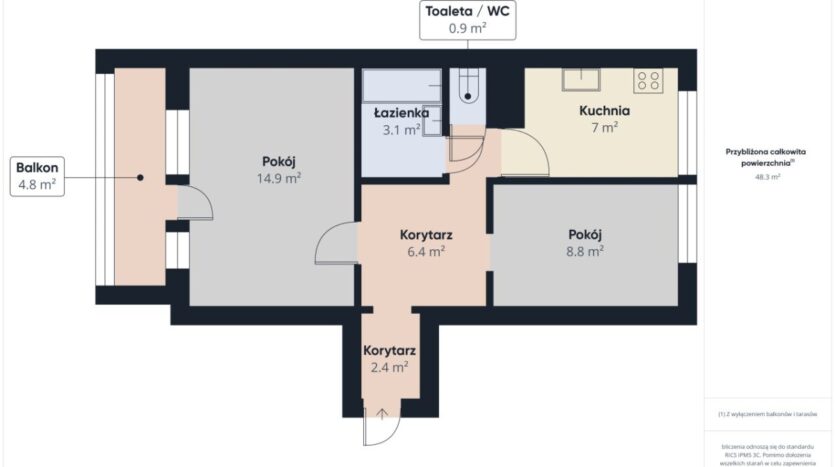 dodatkowe 2,4 m² powierzchni zaadaptowanej poza KW,