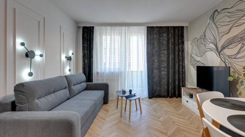 – 2pokoje: salon z wyjściem na balkon + sypialnia