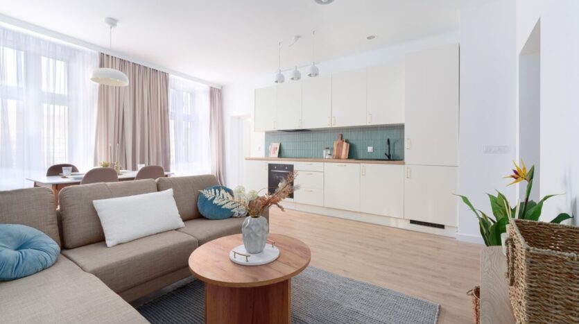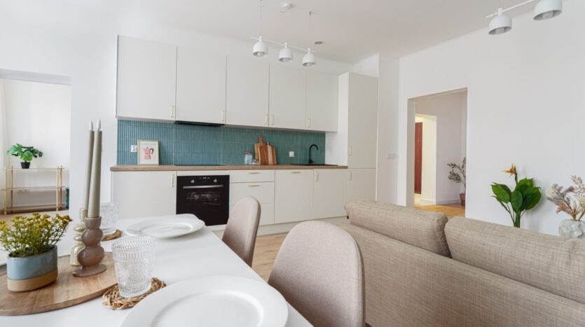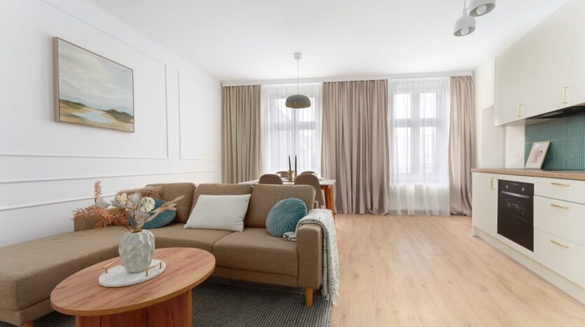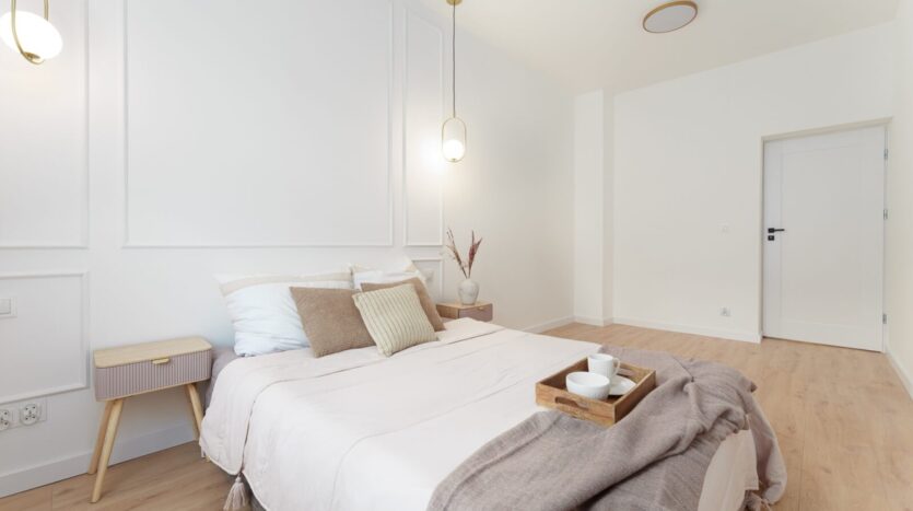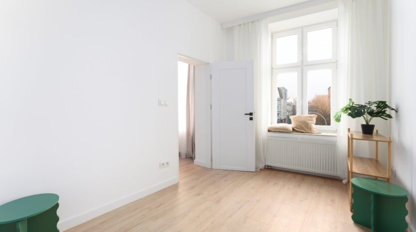 To mieszkanie jest idealnym połączeniem klimatu kamienicy i nowoczesnego wykończenia. Zachwyca już od wejścia: wysokie sufity, duże okna oraz elegancka sztukateria nadają wnętrzu ponadczasowy charakter, przestrzeń i światło. Całość została przygotowana w spójnym stylu, z dbałością o detale i funkcjonalność — bez przypadkowych rozwiązań.