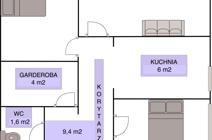 podstawowe wyposażenie na start: lodówka, kuchenka, pralka, kanapa, łóżko.