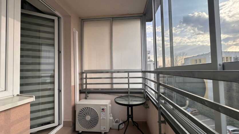 Okna wychodzą na trzy strony świata, dzięki czemu mieszkanie jest doskonale doświetlone. Zabudowany balkon z rozsuwanym przeszkleniem pozwala korzystać z dodatkowej przestrzeni niezależnie od pogody, idealne miejsce na poranną kawę, miniogród czy bezpieczną przestrzeń dla dzieci i pupili. Mieszkanie posiada klimatyzację.