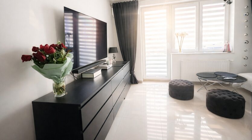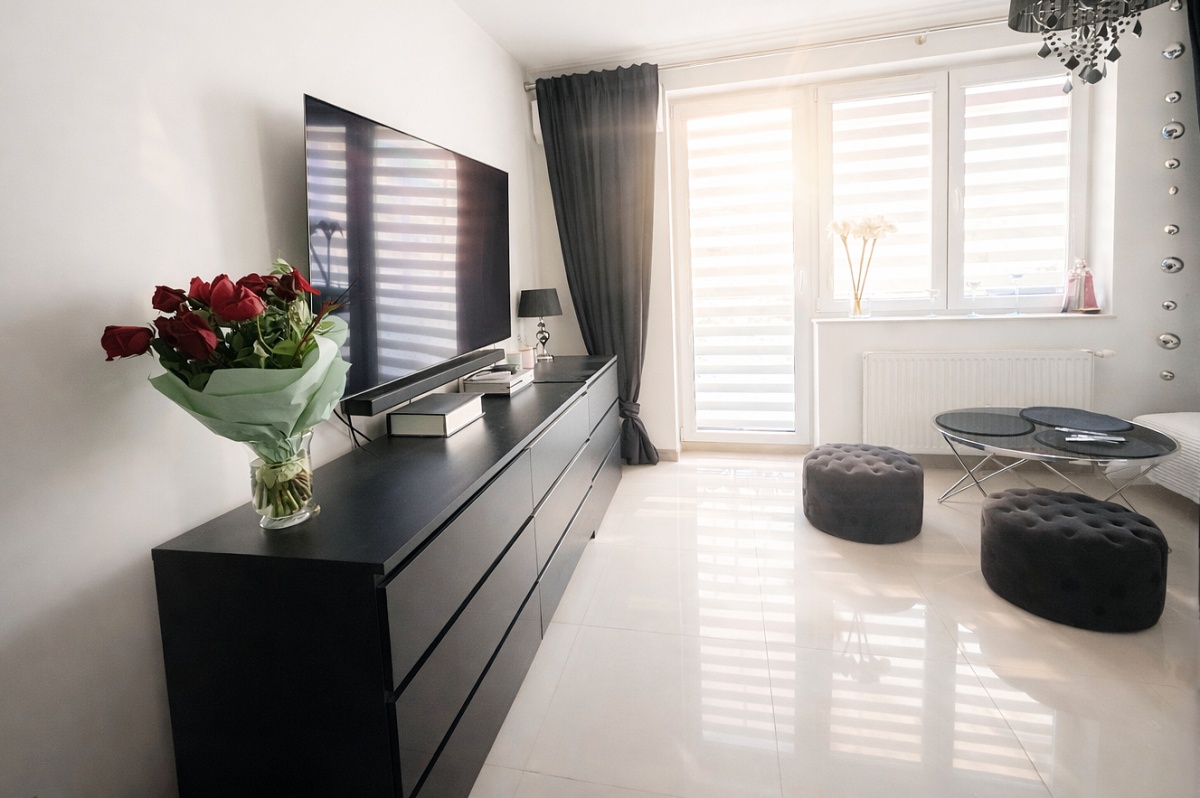 Przemyślany rozkład pomieszczeń zapewnia wygodę na co dzień. Dwie sypialnie tworzą prywatną strefę, a salon z aneksem kuchennym staje się sercem domu do wspólnego gotowania, spotkań z bliskimi i odpoczynku po pracy. Budynek dobrze izoluje od hałasu ulic, dzięki czemu można cieszyć się ciszą i spokojnym sąsiedztwem.