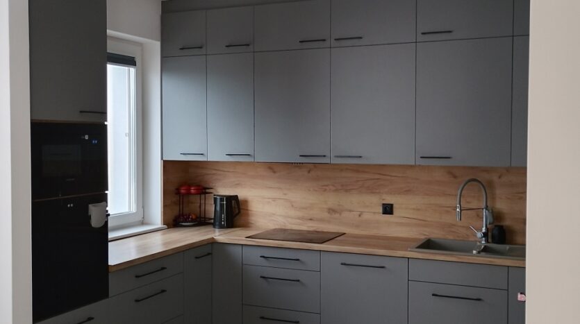 Standard: Mieszkanie wykończone, gotowe do wejścia. W każdym pomieszczeniu zabudowy meblowe na wymiar.