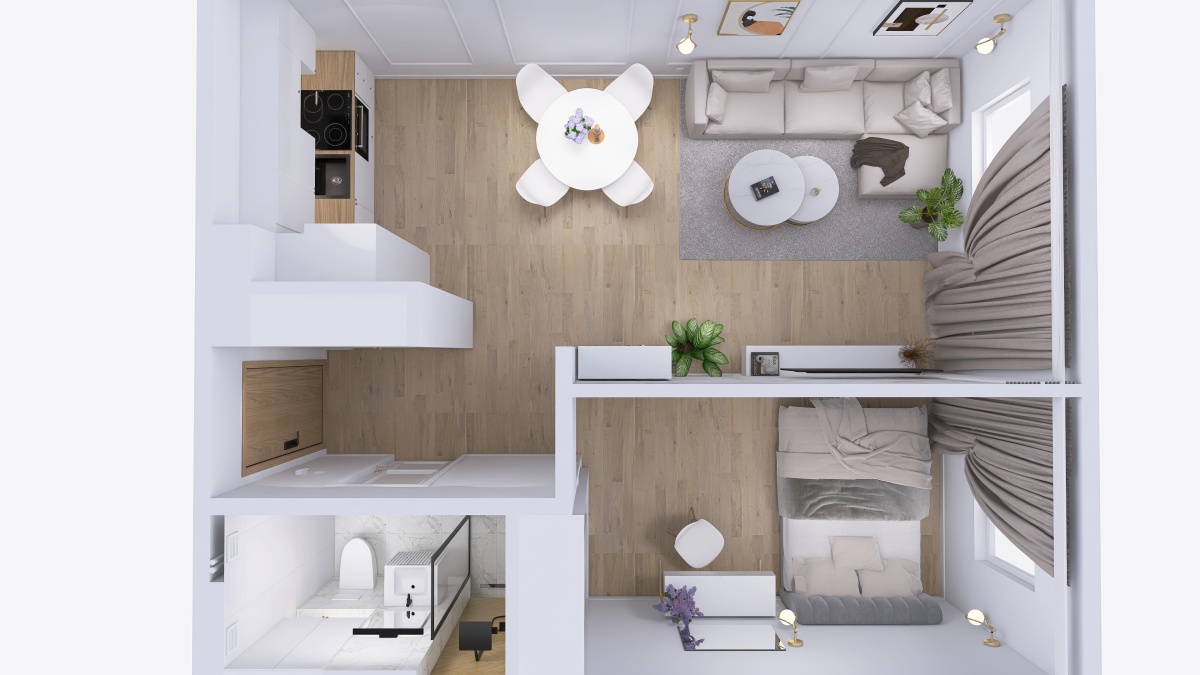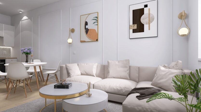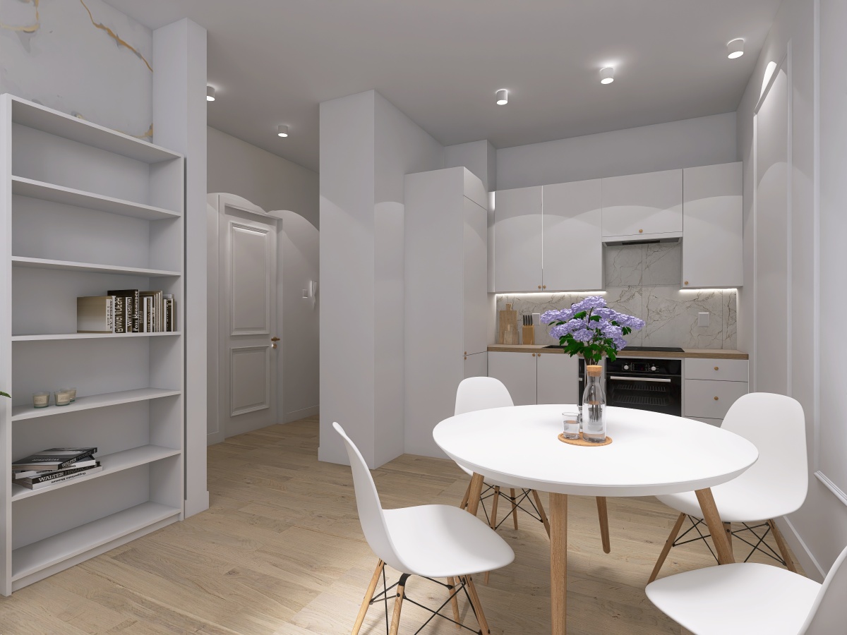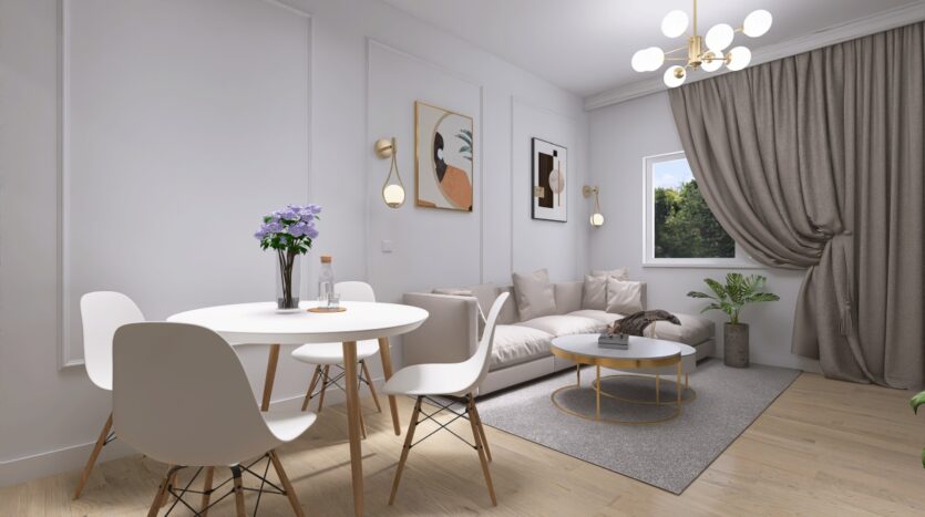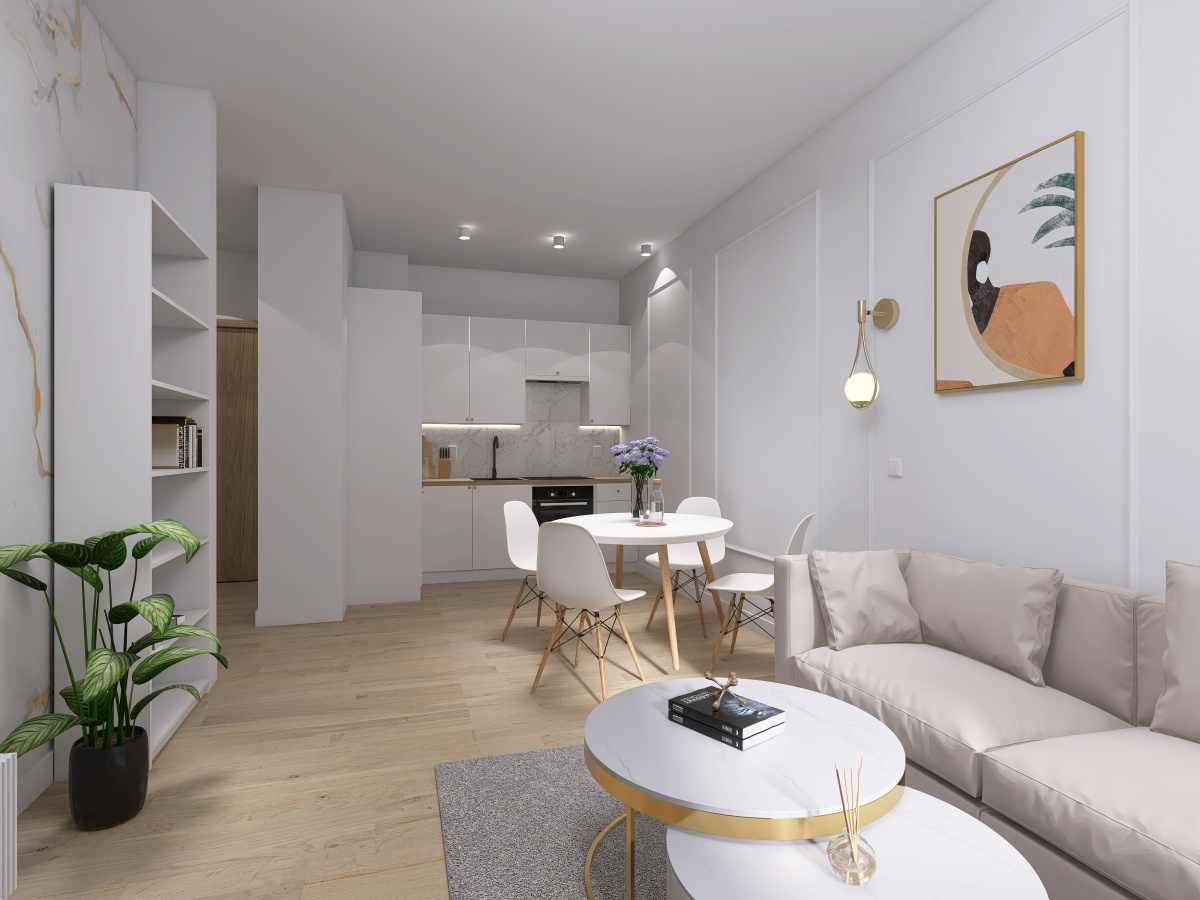salon z aneksem kuchennym,