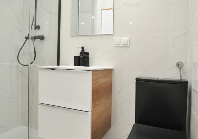 – mieszkanie wykończone w spójnym, nowoczesnym stylu: jasne kolory, świetne doświetlenie, czarne akcenty i wysokiej klasy detale