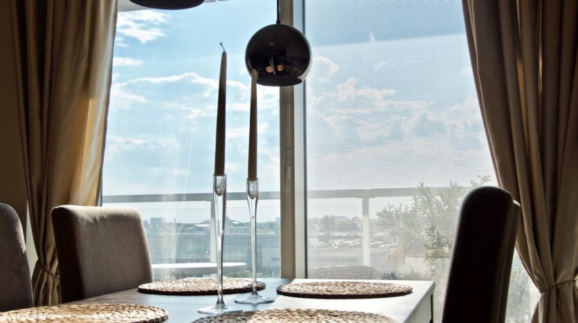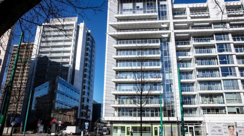 Apartament mieści się w nowoczesnym apartamentowcu z eleganckim lobby, cichobieżnymi windami oraz całodobową ochroną. Do dyspozycji mieszkańców jest dostępna siłownia. Budynek wyróżnia się prestiżowym charakterem i doskonałym położeniem – to adres dla osób ceniących komfort, bezpieczeństwo i miejski styl życia.