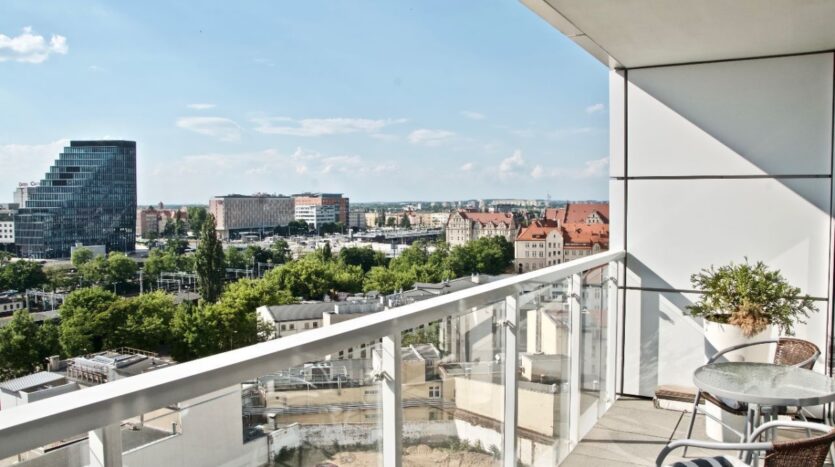 Do wynajęcia przestronne nowoczesne mieszkanie o powierzchni 54 m², usytuowane na najwyższym piętrze w budynku Atanera przy ul. Towarowej – w samym sercu Poznania.