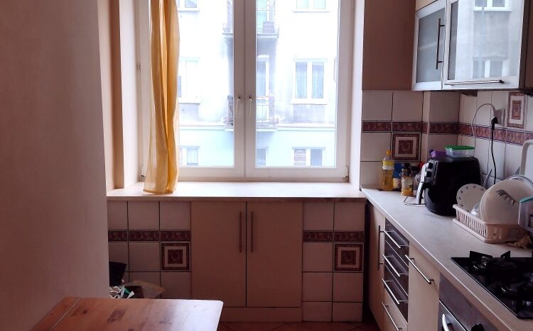 Mieszkanie znajduje się na 1 piętrze w kamienicy z cegły na ulicy Bałuckiego. Jest rozkładowe, dwustronne, z piwnicą. Składa się z dwóch pokoi, kuchni, łazienki, przedpokoju. Jeden z pokoi jest już wynajęty. Mieszka w im pracujący, młody, spokojny mężczyzna. Wolny pokój jest bardzo obszerny i umeblowany. Mieszkanie posiada nowoczesną i wyposażoną w wysokiej jakości sprzęt AGD kuchnię, nowoczesne i funkcjonalne meble, w tym dwie pojemne szafy.