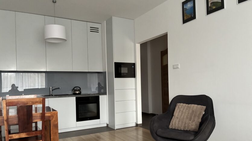 – The apartment consists of a spacious living room with a kitchenette and access to the balcony, a cozy bedroom also with balcony access, a bathroom, and a hallway. Each room has been carefully designed to ensure maximum comfort.