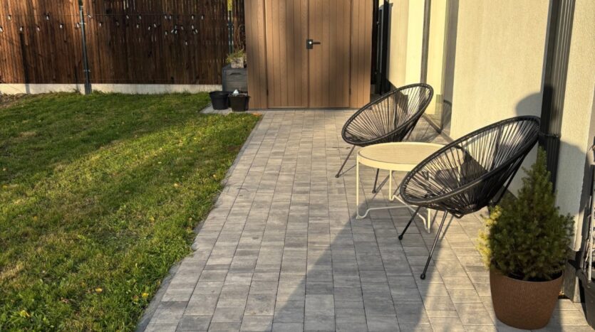 W cenę domu wliczone są meble ogrodowe, domek ogrodowy oraz parasol ogrodowy o średnicy 375 cm. Istnieje możliwości pozostawienia pełnego wyposażenia.