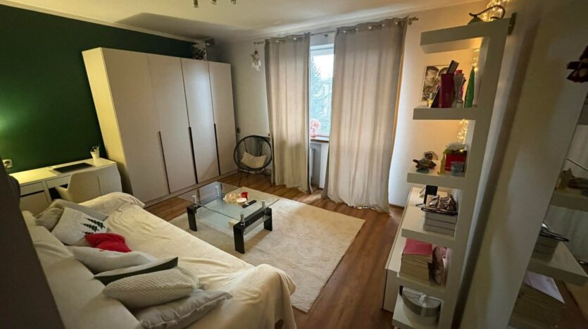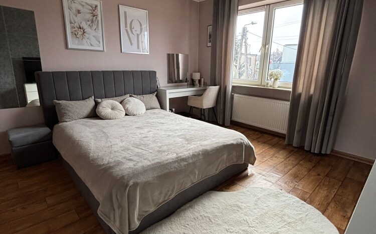1. Parter – dwa duże pokoje, duży balkon, duża kuchnia, łazienka, w trakcie remontu, wymieniony piec gazowy dwufunkcyjny, nowe płytki i panele, okna PCW, sufity karton gips, nowe drzwi wewnętrzne.