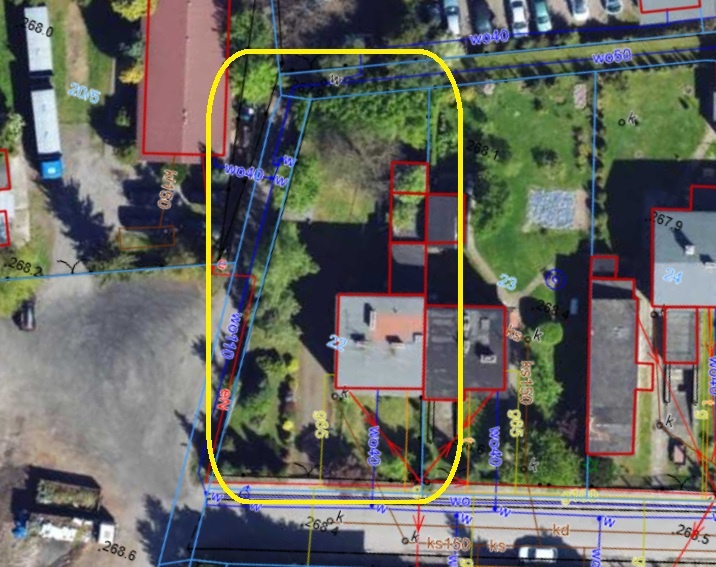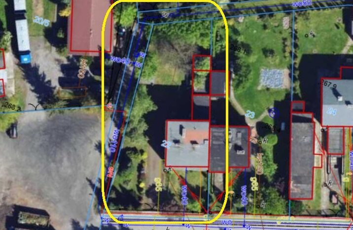 Budynek murowany z pustaków, kryty stropodachem, oddany do użytku w latach siedemdziesiątych, z garażem i budynkami gospodarczymi, o pow. zabudowy 94m2, powierzchnia użytkowa 130m2, posadowiony na działce 737 m2, w zabudowie bliźniaczej w całości podpiwniczony, składający się z: