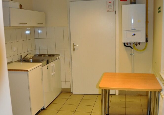 Wyposażenie: zestaw kuchenny, lodówko-zamrażarka, okna szyby bezpieczne, możliwość wynajęcia razem z obecnym wyposażeniem.