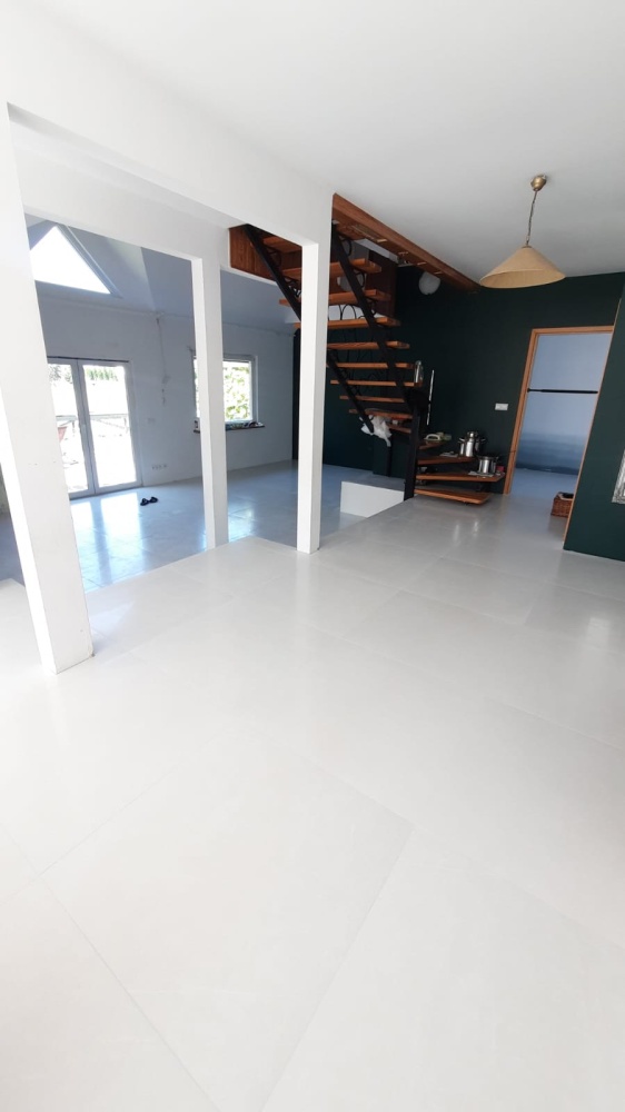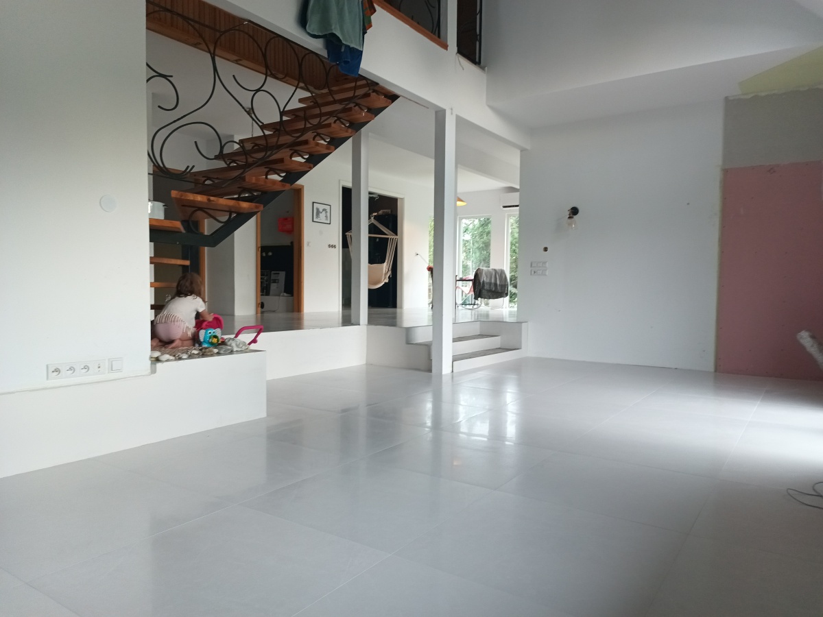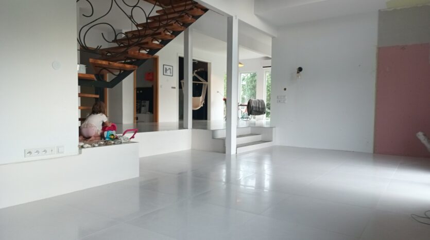 Dom przeszedł generalny remont w 2024 roku – zainstalowano nowoczesny system ogrzewania podłogowego wodnego, bazującego na pompie ciepła o podwyższonej klasie efektywności energetycznej oraz bank energii cieplnej dla instalacji c. w. o. sprzężony z instalacją fotowoltaiczną, co zapewnia niskie zużycie energii.