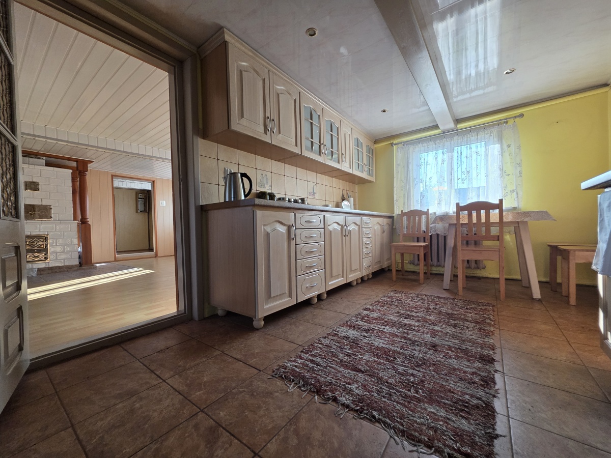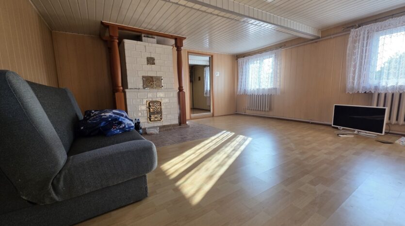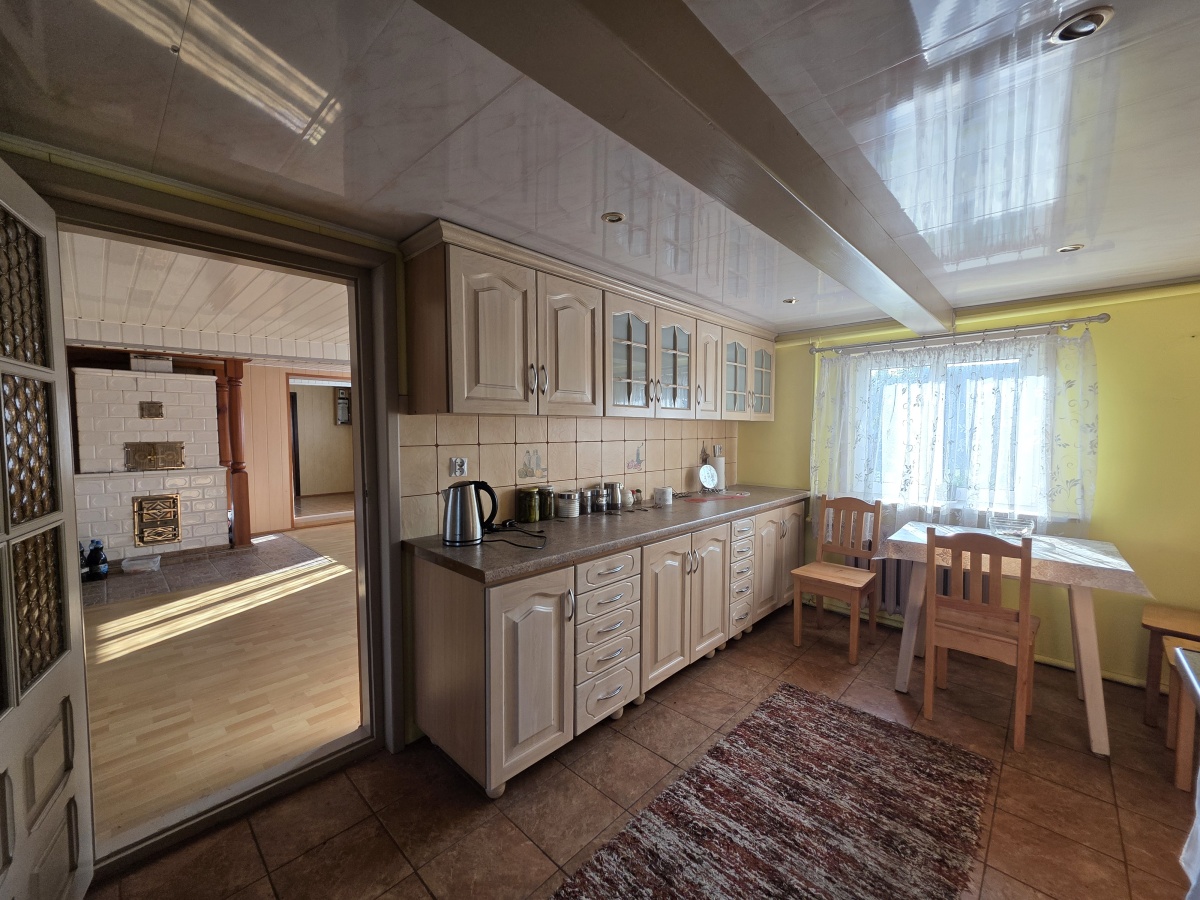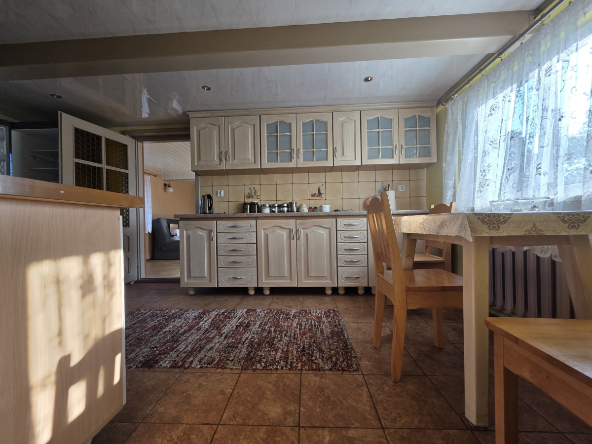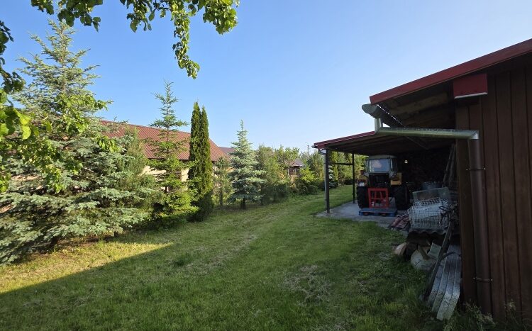 Dom znajduje się na działce o powierzchni 5000 m². Nieruchomość składa się z 3 pokoi, w tym jasnej kuchni z pełnym wyposażeniem i łazienki z WC. Dom jest gotowy do zamieszkania, posiada strych oraz wysoki garaż – powyżej 3,5 m wysokości na dużego busa. Ogrzewanie zapewniają piec węglowy oraz kominek.