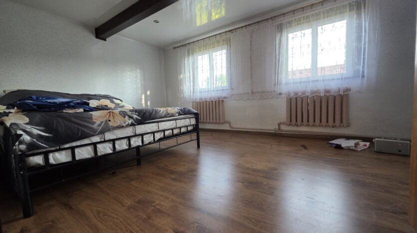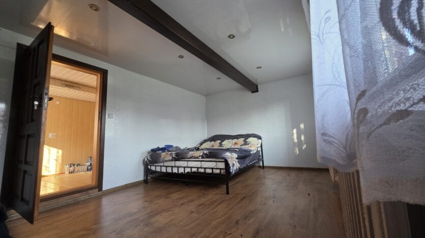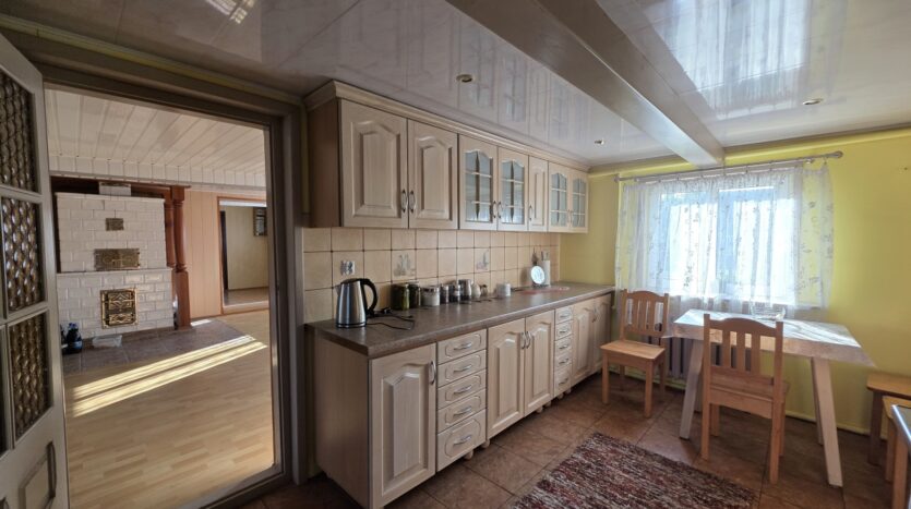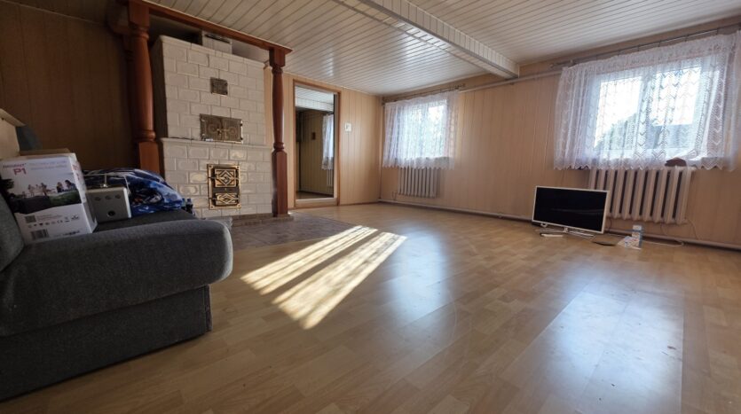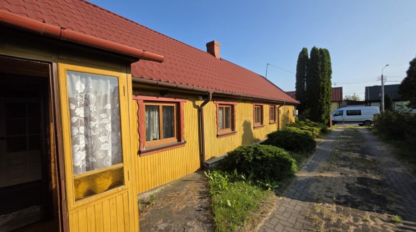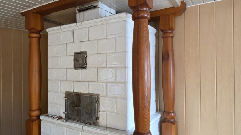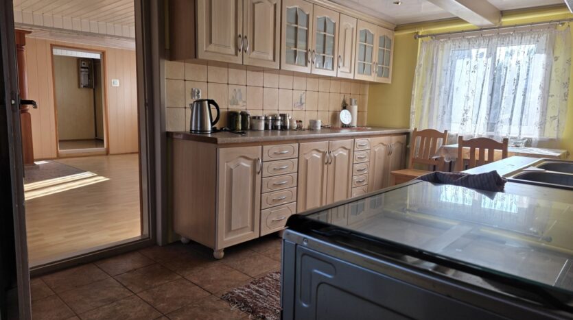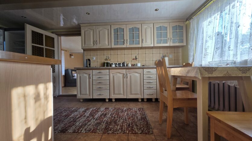 Dom znajduje się na działce o powierzchni 5000 m². Nieruchomość składa się z 3 pokoi, w tym jasnej kuchni z pełnym wyposażeniem i łazienki z WC. Dom jest gotowy do zamieszkania, posiada strych oraz wysoki garaż – powyżej 3,5 m wysokości na dużego busa. Ogrzewanie zapewniają piec węglowy oraz kominek.