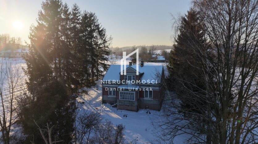 Dom wzniesiony został w drugiej połowie XX wieku w technologii tradycyjnej murowanej z dachem dwuspadowym pokrytym eternitem. Charakterystycznym elementem bryły jest weranda z lukarną i balkonem zdobiąca front domu. Podłoga na gruncie oraz stropy betonowe, dzięki czemu konstrukcja jest trwalsza i odporna na upływ czasu. Dom jest suchy, ustawny i ma ogromny potencjał aranżacyjny.