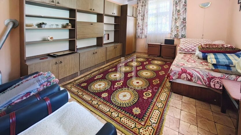 2/ Wysoki parter gdzie znajduje się: ganek, korytarz, duży dzienny pokój, dwie jasne i słoneczne sypialnie, przechodnia kuchnia, spiżarka i łazienka z wanną i wc,