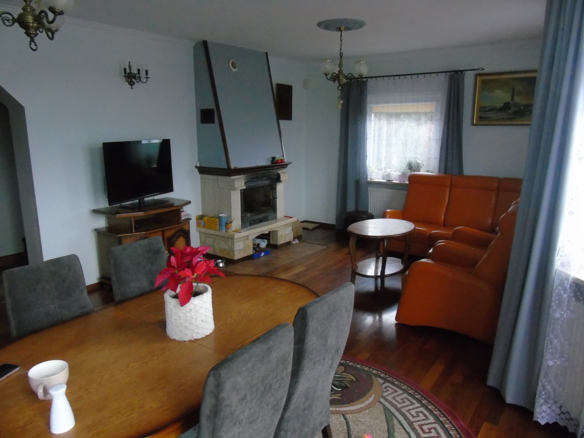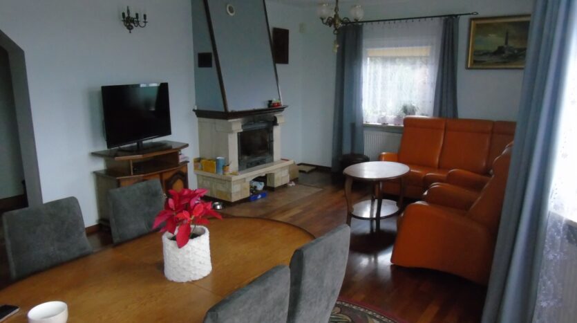 Dom w ciągłym zamieszkaniu , usytuowany na zagospodarowanej i zakrzewionej działce w ilości 850 m2.