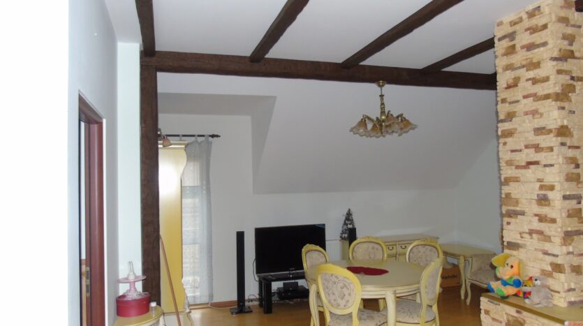 5 pokoi , dwie łazienki , kuchnia oddzielna , wiatrołap , 2 balkony, kotłownia oraz dwa garaże ,