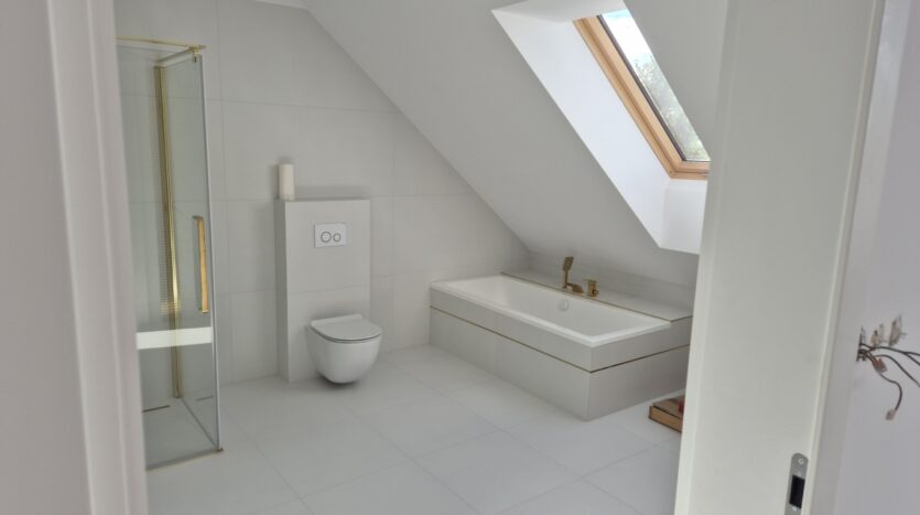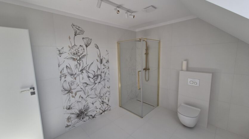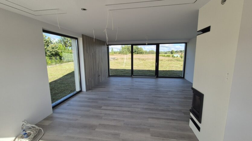 Na sprzedaż nowy dom jednorodzinny ok. 130 m², wybudowany wg projektu Studio 71, na działce 1040 m² w spokojnych Mściszewicach (Kaszuby), tylko 300 m od jeziora.