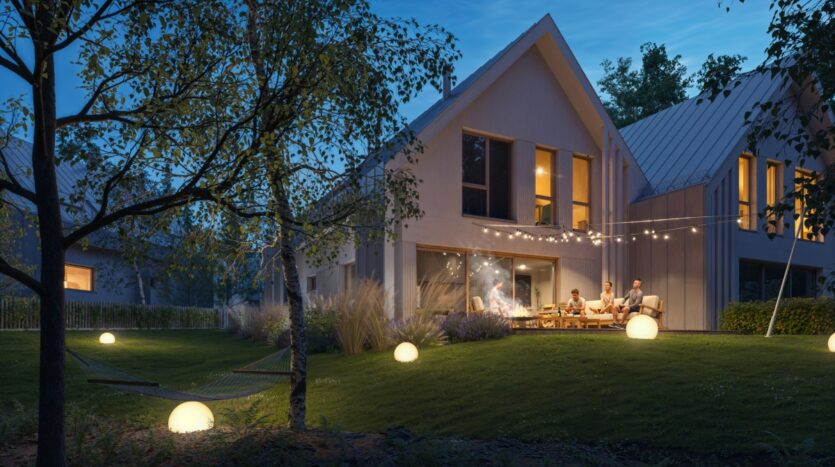 Dom o powierzchni 128 m² to idealna propozycja dla osób, które szukają nowoczesnego, ale kompaktowego domu w wysokim standardzie wraz z dużym 301m2 ogrodem.