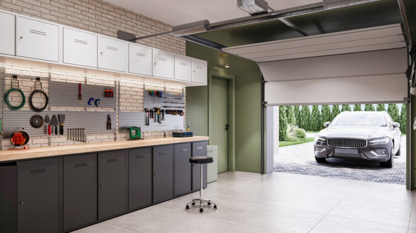 garaż w bryle budynku i dodatkowe miejsce postojowe na podjeździe,