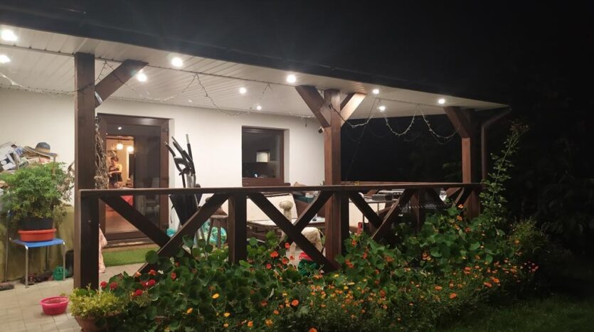 Pod częścią domu piwnica – kotłownia z miejscem na przechowywanie przetworów.