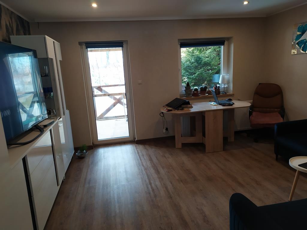 Pokój 18m z wyjściem na zadaszony taras 2,8mx4,2m (12m) od zachodniej strony.