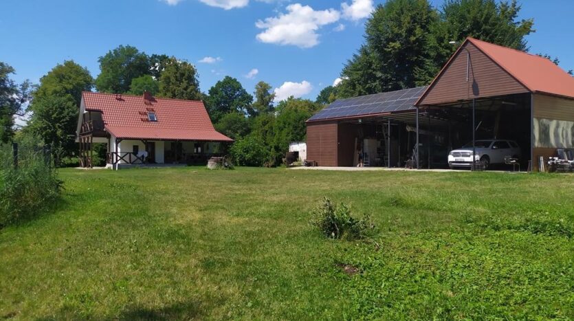 Wysoka Drewniana stodoła o powierzchni 150m plus 50m z możliwością przebudowy lub zburzenia i postawienia nad samym jeziorem budynku, domu czy pensjonatu. Budowa bez względu na bliskość brzegu jeziora jest możliwa ze względu na przepisy umożliwiające budowę na starym budynku. Do stodoły doprowadzone trójfazowe zasilanie prądem i ujęcie wody.