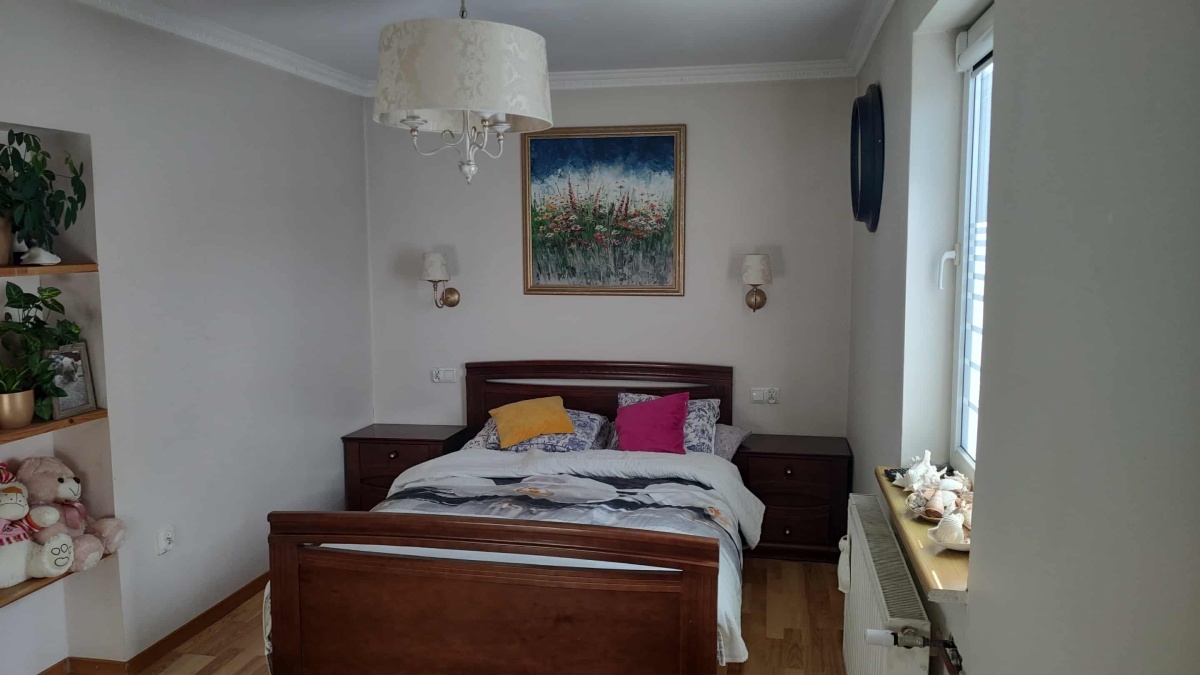 Przedstawiam państwu dom wolnostojący jednorodzinny,dwumieszkaniowy z pięknym zadbanym ogrodem pełnym róż oraz dużym tarasem z tyłu domu. Na parterze znajduje się kominek.Dom ma 164,9 M2 powierzchni użytkowej z działką 858m2. Atutem są dwa osobne wejścia z dwoma licznikami na prąd.Jest również możliwość wejścia z parteru na piętro domu.Dom jest częściowo podpiwniczony, strych można wygospodarować na dodatkowe pomieszczenie ( częściowo zostały położne panele) np.bawialnie dla dzieci. Do domu przynależy pomieszczenie gospodarcze wolnostojące Dom jest własności do opłat należą liczniki.Kanalizacja obecnie podprowadzana przez gminę oraz możliwość podpięcia się pod gazociąg. Dwa miejsca postojowe przed budynkiem. W pobliżu szkoła podstawowa , przedszkole, żłobki, sklepy, dom chłopa ( serwują domowe jedzenie oraz ciasta, często są organizowane zajęcia dla dzieciaków ale również dla seniorów), itp. Komunikacja MPK Wrocław (9 minut do leśnicy). Odbiór budynku w 2024 roku (charakterystyka budynku).