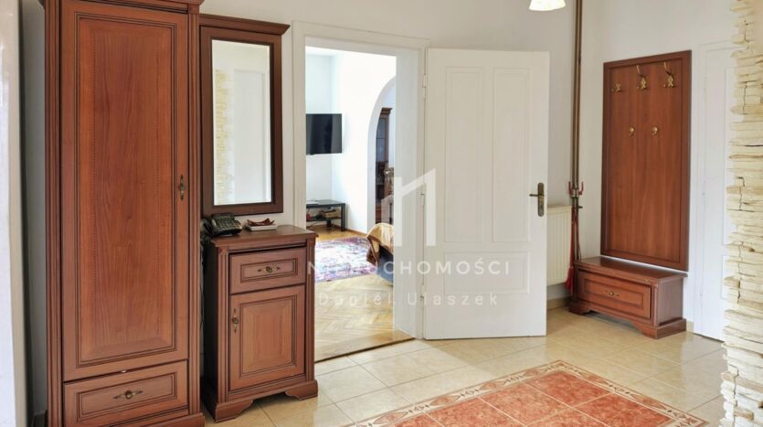 Niewątpliwym atutem tej atrakcyjnej nieruchomości jest jej lokalizacja w sąsiedztwie domów jednorodzinnych otoczonych zielenią, a jednocześnie kilka minut od centrum miejscowości, gdzie znajdziemy: szkoły, sklepy, urząd gminy, kościół, ośrodek zdrowia, aptekę.