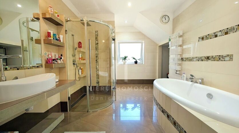 – dużą łazienkę z wanną, prysznicem i toaletą,