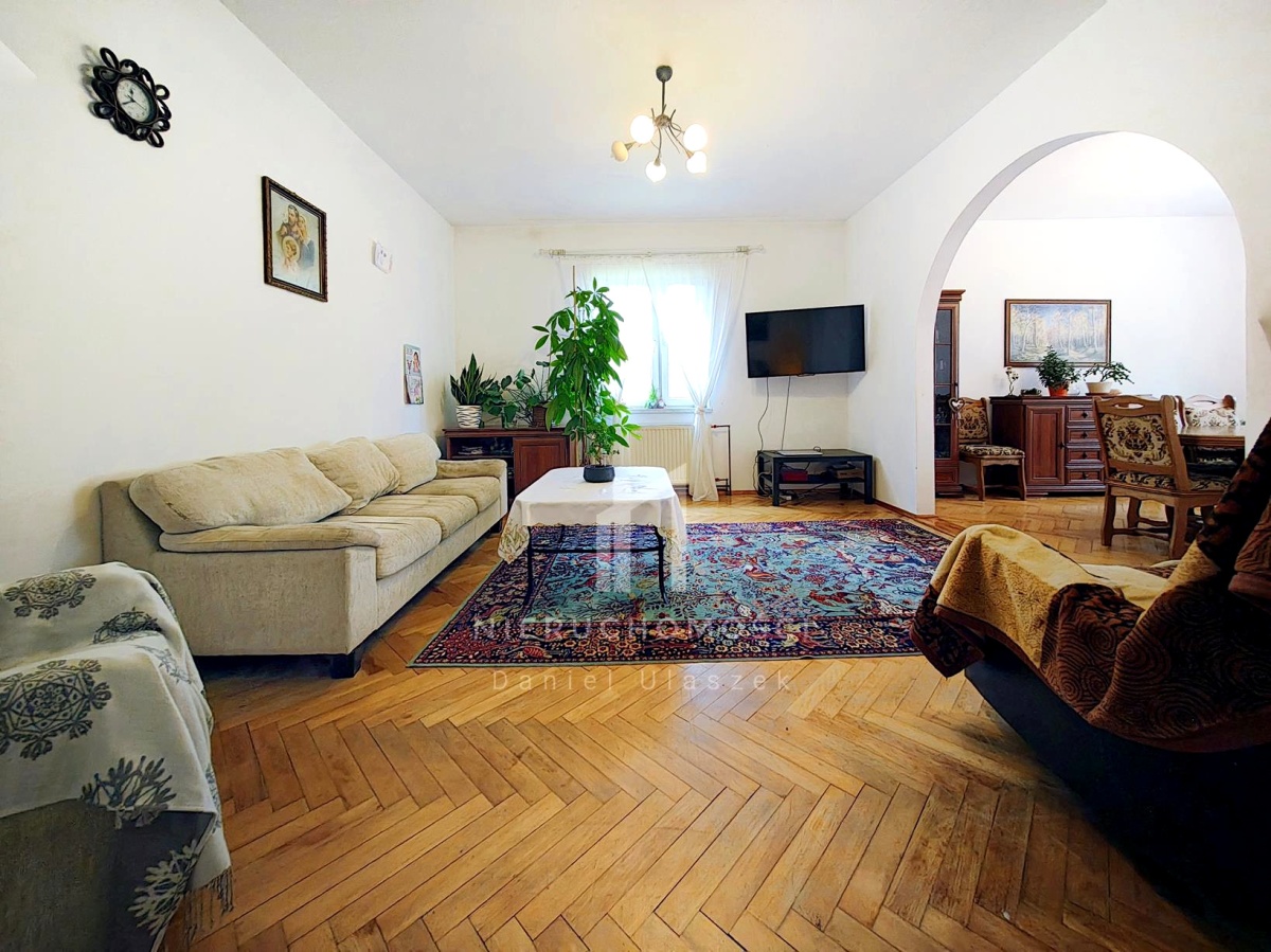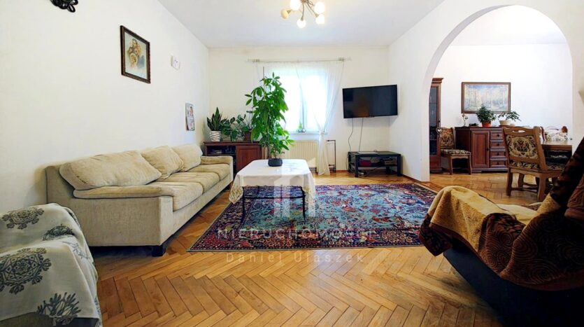 Prezentowany budynek jednorodzinny wybudowany został w 1971 roku z dwuwarstwowych ścian zewnętrznych wykonanych z cegły pełnej i pustaka oraz ocieplonych styropianem o grubości 10cm. Fundamenty zaizolowane przeciwwilgociowo. Dach o konstrukcji dwuspadowej pokryto blachą malowaną i ocieplono wełną o grubości 15cm. Dach domu wyposażono w panele solarne do podgrzewania wody, co przekłada się na znacznie niższe rachunki. Wszystko zostało tu przemyślane, co zapewnia wygodę i komfort mieszkania.