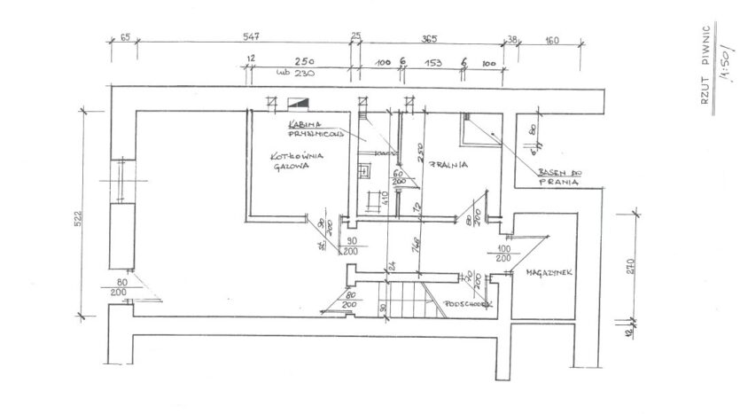 Piwnica (wys. 2,5 m), powierzchnia łącznie ok. 48 m2