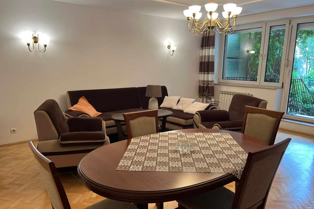 Ogród ze starodrzewem, który zapewnia prywatność i spokój – idealne miejsce na wypoczynek w cieniu drzew lub spotkania z rodziną i przyjaciółmi.