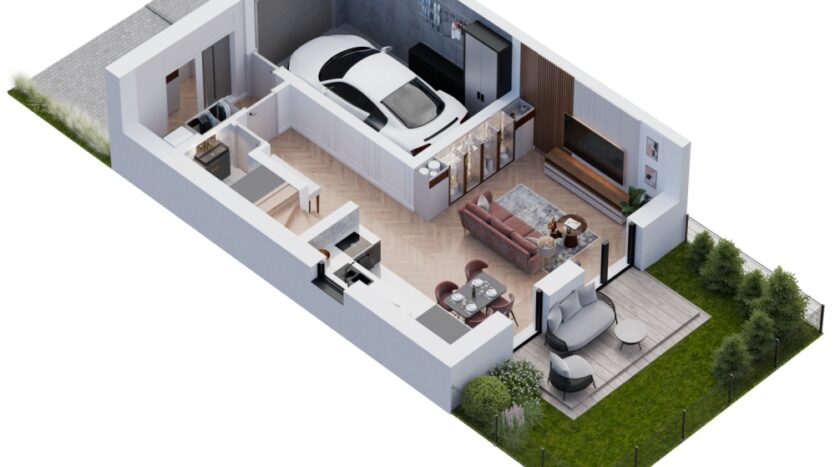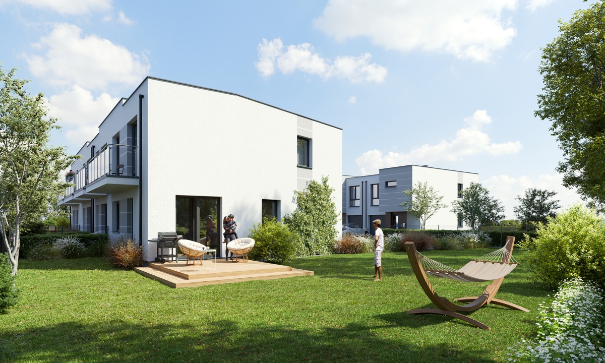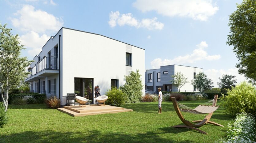 jest we własny garaż z podjazdem. Każdy z domów posiada urokliwy