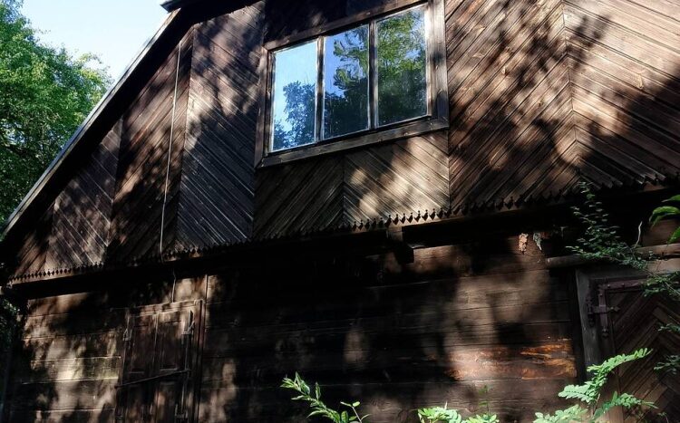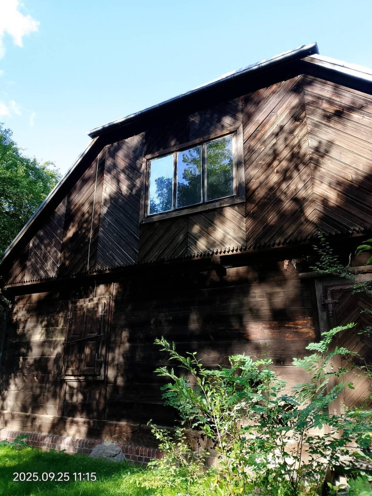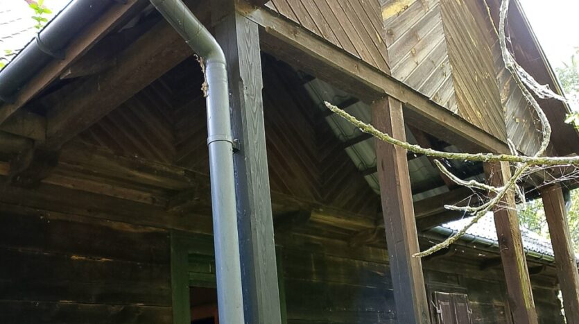 Dom w konstrukcji drewnianej , z trzema małymi podpiwniczeniami i wymienionym za zgodą konserwatora dachem w 2000 roku .
