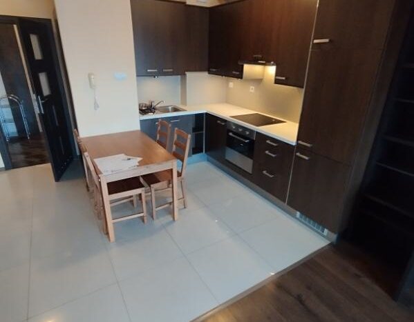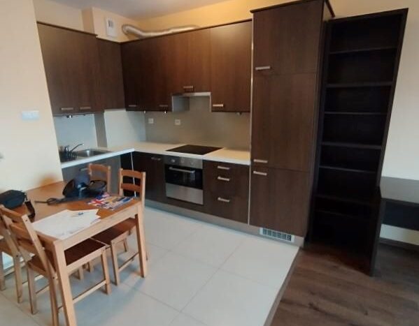 Ta nieruchomość ma 43 m² i znajduje się na 4. piętrze w budynku z 2011 roku. Posiada 2 pokoje, kuchnię z wysokiej jakości wyposażeniem oraz dwa balkony. Mieszkanie jest gotowe do zamieszkania, wyposażone w meble, lodówkę, piekarnik i płytę grzewczą.