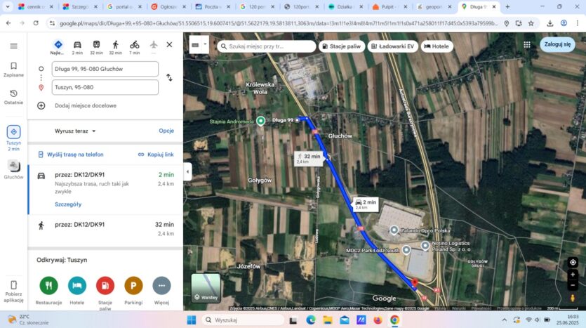 Do drogi krajowej nr 12 100 metrów, do wjazdu na autostradę A1 2,5 km