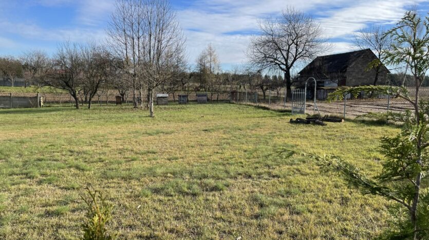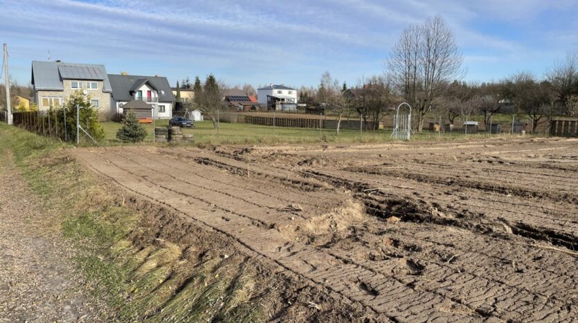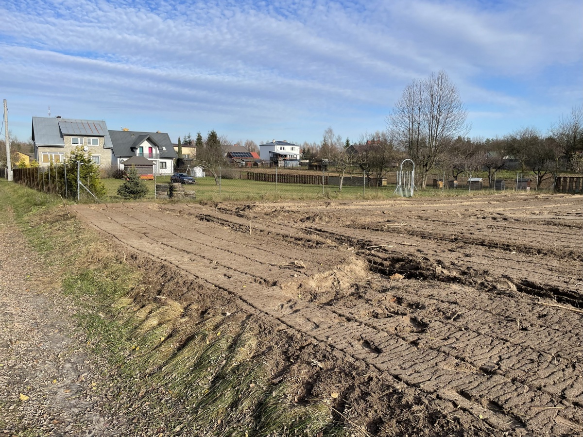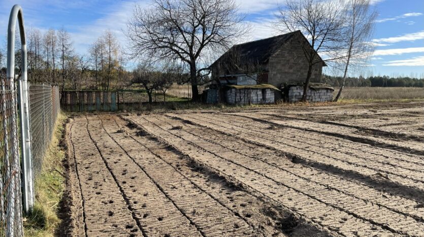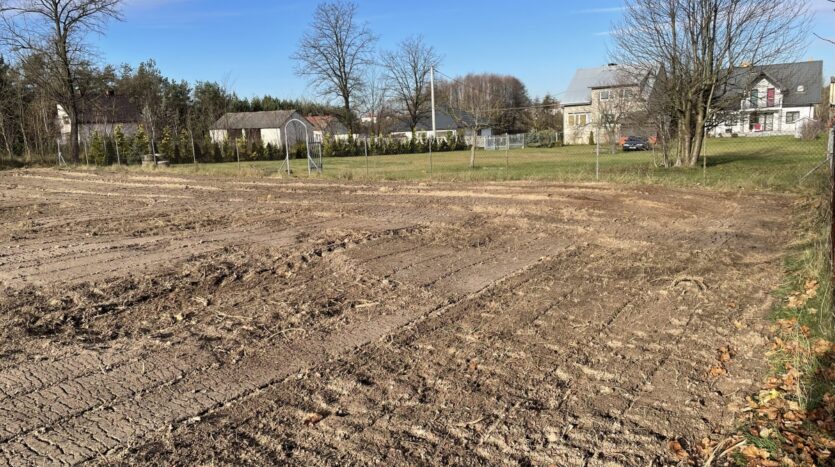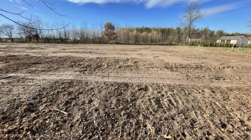 Działka o regularnym, niemal kwadratowym kształcie 33 na 32m i równej powierzchni 1066m2, oczyszczona z zarośli (wgłębnie zmulczowana), ze spulchnioną, wysokiej klasy ekologiczną glebą.