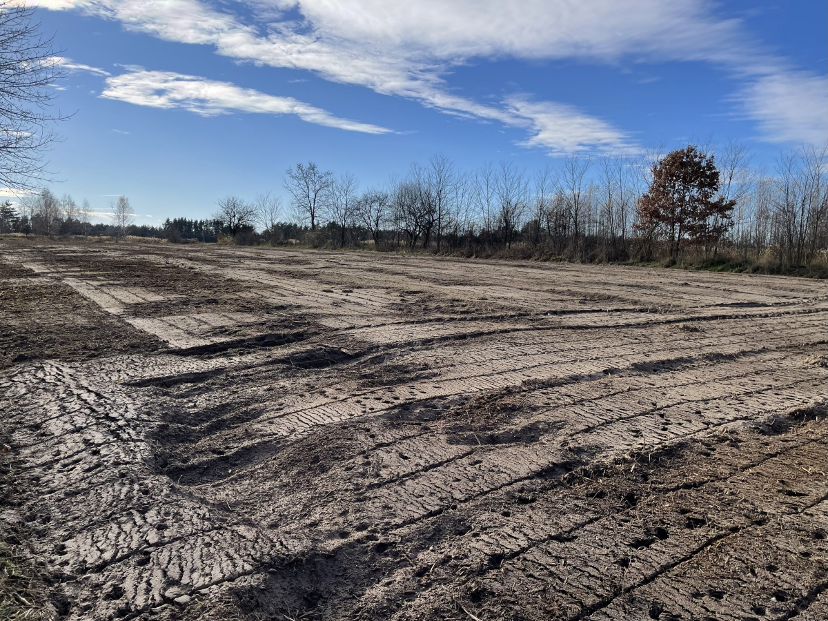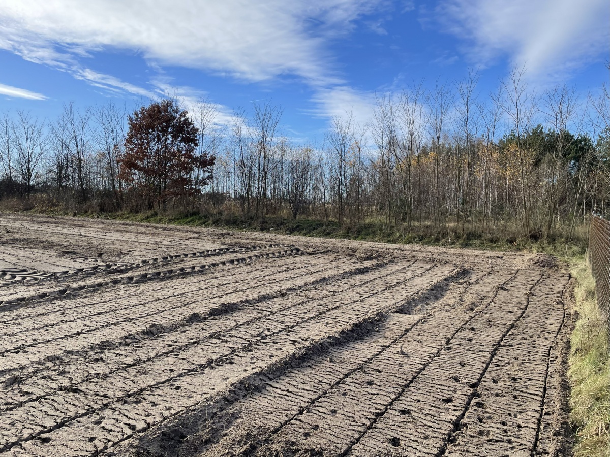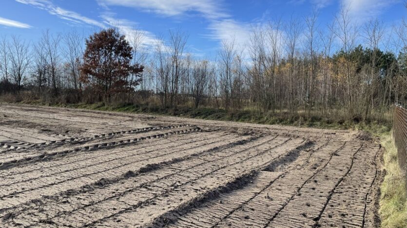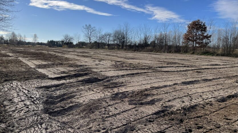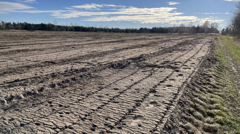 Działka o regularnym, niemal kwadratowym kształcie 33 na 32m i równej powierzchni 1066m2, oczyszczona z zarośli (wgłębnie zmulczowana), ze spulchnioną, wysokiej klasy ekologiczną glebą.